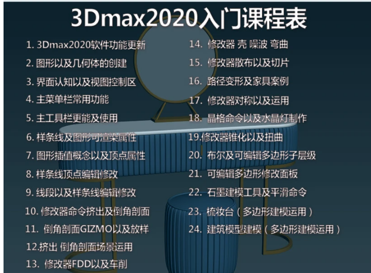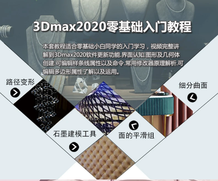 本教程适合零基础小白同学的入门学习,视频完整讲解到3dmax2020软件更新功能、界面认知、 图形及几何体创建、可编辑样条线属性以及命令、常用修改器原理解析、可编辑多边形属性了解以及运用!